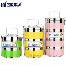 茂盛年华德堡彩色提篮不锈钢饭盒三层大容量保温桶四层便当盒提锅