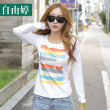 自由婷2017春装新款女装上衣打底衫棉韩版修身大码显瘦长袖t恤女