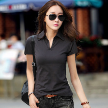 自由婷夏季女装打底衫纯色韩版修身显瘦衬衫领上衣棉质短袖t恤女