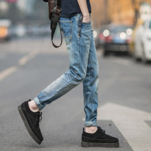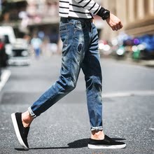 9分牛仔裤男弹力小脚牛仔裤 男夏季修身显瘦复古青年男裤子韩版潮
