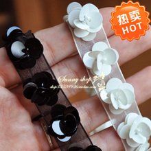 服装辅料1.6cm宽纯手工珠片黑白色花朵花边HB140942 6.4元/半码