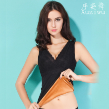 序姿舞序姿舞加绒加厚打底衫上衣内衣 美体塑身保暖背心 提花蕾丝