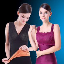 序姿舞新款女士时尚加绒加厚抹胸塑身双层保暖背心修身打底上衣