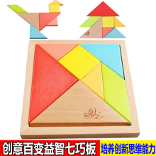 木制学习 大号七巧板积木 宝宝智力木质拼图玩具儿童