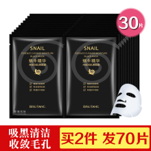 30片蜗牛精华蚕丝黑面膜清洁收缩毛孔补水保湿嫩白男女免洗面膜贴