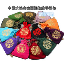 中国式棉麻零钱包 拉抽口袋布袋 小礼品袋 团福刺绣 中国婚庆礼物