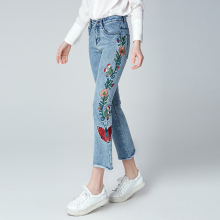 阔腿牛仔裤女春夏季2017新款刺绣做旧喇叭裤女高腰修身显瘦九分裤