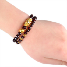 24K足金貔貅转运珠路路通手链男女款黄金石榴石手串多圈天然正品