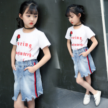 女童夏装套装2017新款儿童短袖T恤中大童牛仔裙包臀裙休闲两件套