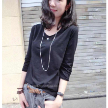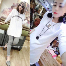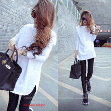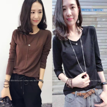 2017春夏新款中长款韩版女装宽松长袖t恤竹节棉上衣白色厚打底衫