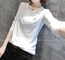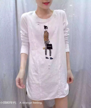 白色长袖中长款加厚面料打底衫女纯棉上衣刺绣宽松大码t恤欧美潮