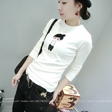 欧洲站2017欧货春装白色小熊中长款长袖女t恤纯棉打底衫上衣体恤