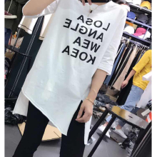 中长款白色T恤2017新款韩版时尚潮流胸前印字母下摆破洞打底衫女