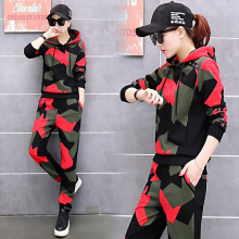 2017春秋装新款韩版休闲运动套装女气质迷彩显瘦时尚卫衣两件套潮