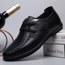 秋季新款男鞋休闲鞋男士系带圆头青年皮鞋软面皮舒适透气真皮鞋子