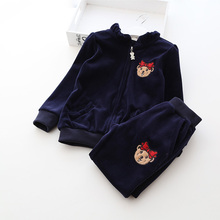 2017新款春秋装女童天鹅绒运动2件套儿童韩版开衫卫衣休闲裤套装