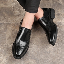夏季潮韩版尖头黑皮鞋男休闲透气雕花布洛克鞋英伦内增高男鞋6cm