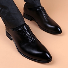 男士尖头皮鞋男休闲软面皮韩版内增高潮流柔软舒适商务系带婚鞋子