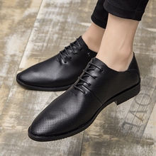 夏季黑色皮鞋男休闲透气韩版潮男英伦尖头男鞋子皮鞋男 软面皮
