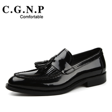 新款夏季男士休闲皮鞋男英伦尖头漆皮男鞋流苏单鞋亮皮婚鞋子男潮