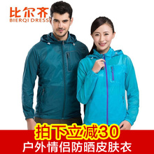 比尔齐户外防晒风衣情侣皮肤衣 男女透气轻薄防泼水运动防晒服