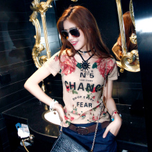 欧洲站2016夏装新款欧货修身t恤女短袖个性印花韩范体恤上衣女夏