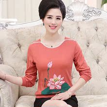 中老年女装长袖T恤40-50岁妈妈装春秋装针织衫中年女装打底衫上衣
