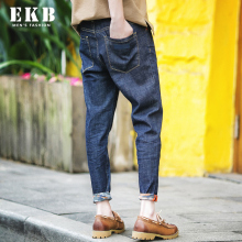 EKB 2017春季韩版牛仔九分裤男士修身小脚裤男直筒潮流显瘦裤子男