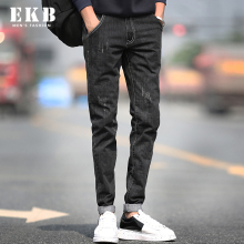 EKB 破洞牛仔裤男修身小脚长裤青年韩版潮流百搭2017春季新款男士