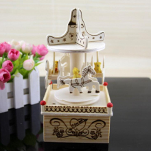 旋转木马情侣音乐盒 桌面摆件木质装饰品创意生日礼物送女友朋友