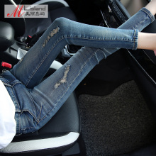 2016春秋款破洞牛仔裤女九分裤修身韩国女士铅笔裤学生乞丐裤高腰
