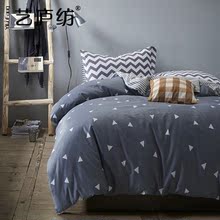 艺庐纺纯棉简约条纹四件套春夏全棉纯色个性男士被套床单床上用品