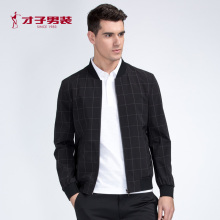 TRiES/才子男装2017春季新款男士夹克立格子黑色立领时尚修身外套