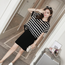 连衣裙女夏2017新款韩版莫代尔修身时尚套装显瘦学生吊带条纹裙子