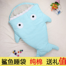 纯棉婴儿鲨鱼睡袋宝宝防踢被外出推车睡袋秋冬保暖抱被新生儿礼盒
