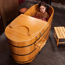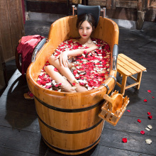 川柏脂橡木沐浴桶成人泡澡木桶熏蒸带盖洗澡桶实木浴缸洗浴盆