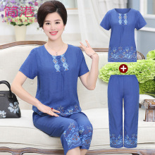 中老年女装夏装短袖九分裤两件套夏季中年妈妈装休闲上衣裤子套装