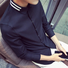 ONE77 2016秋装新款男士休闲长袖衬衫纯棉韩版修身型青少年衬衣潮