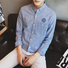 新品春秋款小领休闲长袖衬衫 男韩版修身型牛津纺青少年男士衬衣