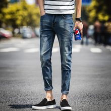 2016春季新款 原创男士牛仔九分裤 舒适小脚9分裤 青少年裤子男