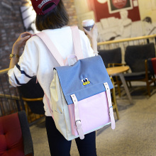 夏季新款韩版大容量双肩包女帆布撞色中学生书包休闲背包甜美淑女