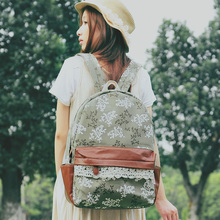 森系文艺帆布双肩包女韩国小清新校园书包韩版初中学生碎花小背包
