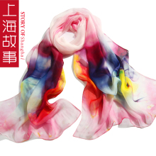 上海故事真丝丝巾女春秋长款披肩百搭桑蚕丝围巾夏季防晒雪纺纱巾