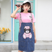 2017夏季新款粉色小熊T恤女加亮片背带牛仔裙学生气质休闲两件套