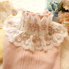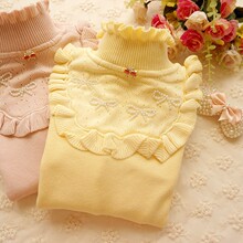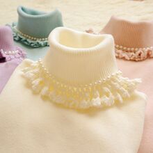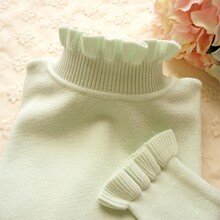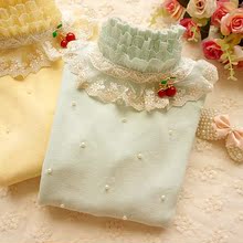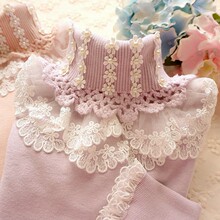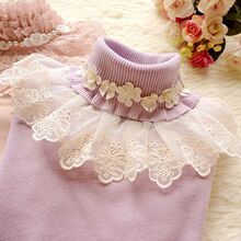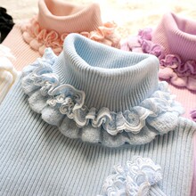 秋冬新款甜美公主花朵蕾丝花边高领长袖针织女装加厚打底衫 毛衣