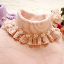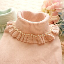 秋冬新款加厚针织衫珍珠领木耳边修身百搭打底衫高弹高领女装毛衣