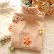 甜美花朵加厚针织衫高领毛衣秋冬新款女装加厚打底衫修身上衣2016