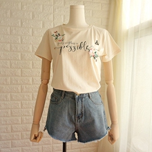 纯棉套头短袖t恤打底衫水钻立体亮片花朵T恤打底衫2017春夏新款女