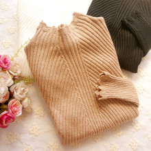 2016秋冬新款加厚针织衫修身显瘦木耳边时尚百搭套头毛衣打底衫