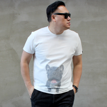 夏新款卡通狗头韩版潮胖特大号男装加肥加大码圆领男士短袖t恤